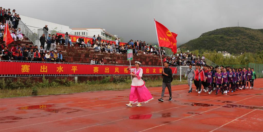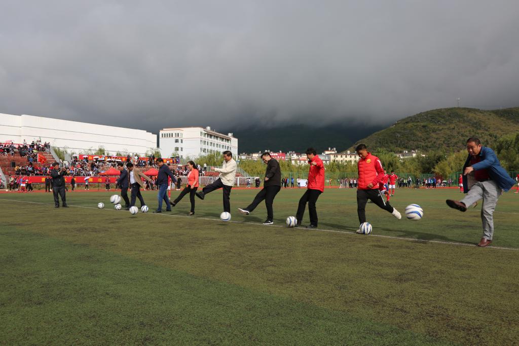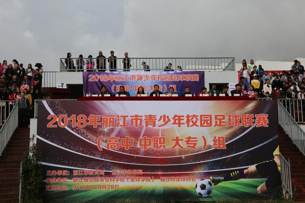 9月20日上午,丽江市2018年青少年校园足球联赛(高中、中职、大专组)在我校开幕。原省教育厅副厅级巡视员、云南省学生体育协会副会长张国华,我校张洪波校长,云南省青少年校园足球领导小组办公室副主任李华海,云南省学生体育协会足球专业委员会主任薛斌,丽江市教育局副局长朱晓南,古城区教育局局长张廷钧,丽江市足球协会主席王建民,校企合作单位—丽江太和集团总裁和翥春,以及应邀出席的相关部门领导、来宾和我校师生参加了此次开幕式。开幕式由我校党委委员、足球运动职业学院院长王曙主持。本次校园足球联赛由丽江市教育局、丽江市体育局主办,丽江师范高等专科学校(足球学院)、丽江市足球协会承办,旨在提高丽江市青少年足球运动水平,让青年学生在快乐足球中强身健体,锻炼意志品质,通过比赛培养团队合作意识和顽强拼搏精神,加强校际交流。