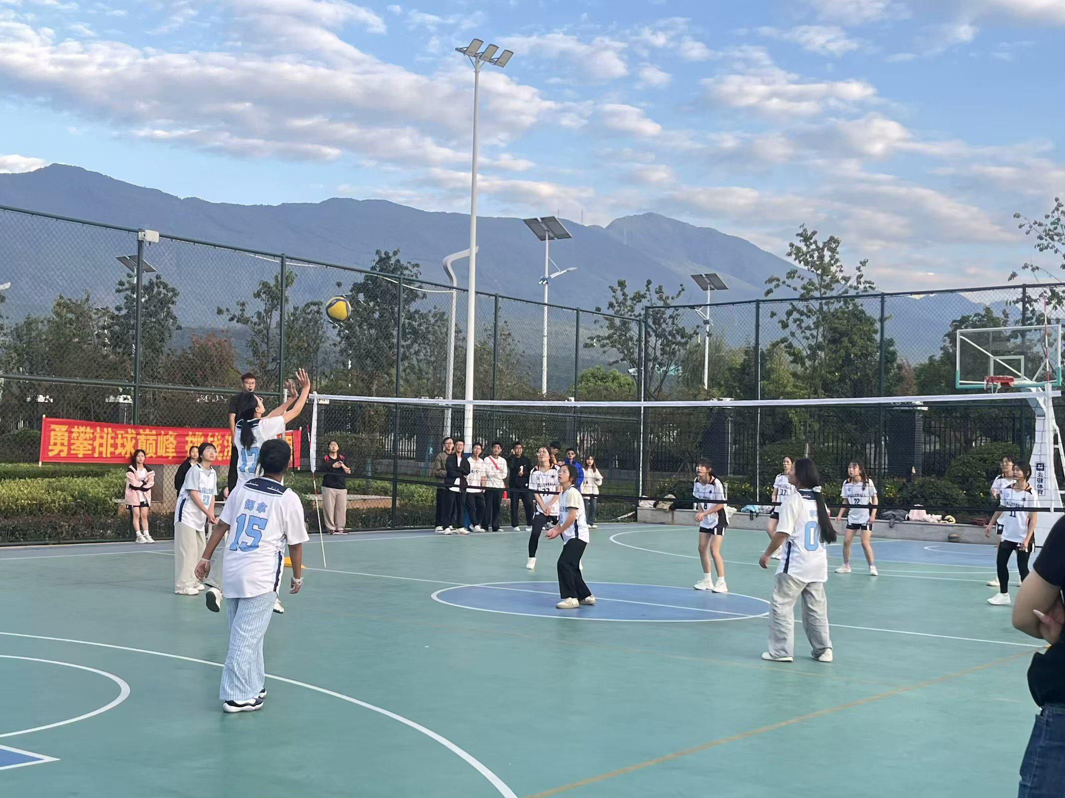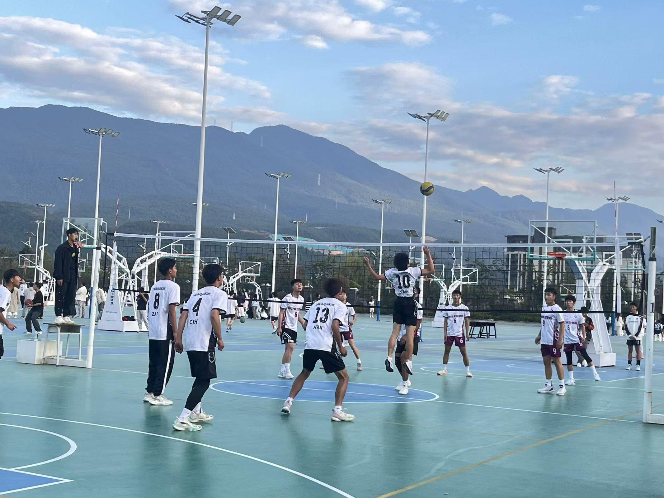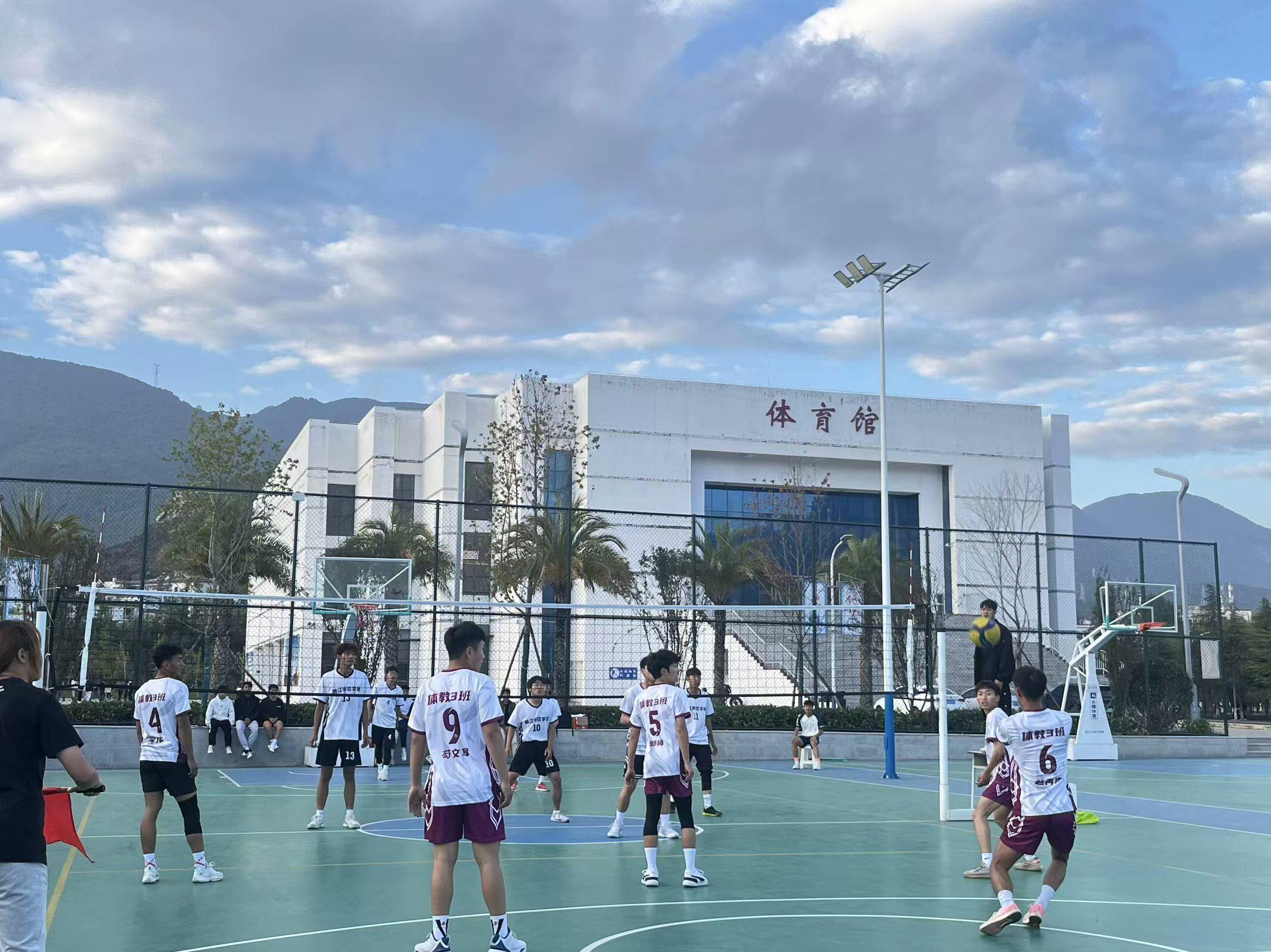 丽江师范学院篮球场,排球争霸赛进行中。