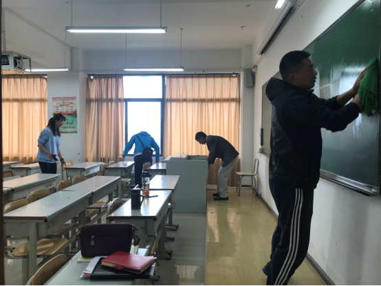 为了给学生提供干净整洁的上课场所,让学生回来以后有更好的学习环境,同志们热情投入到清扫当中。充分发挥了党员的先锋模范作用,体现对学生返校的期待和对学生的关心关爱。