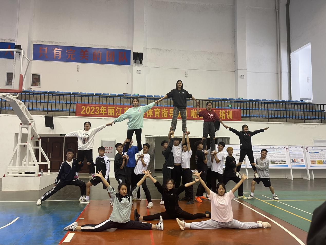 为进一步提升丽江市社会体育指导员(啦啦操)项目的社会指导水平和技能,2023年5月11日-12日,2023年丽江市社会体育指导员(啦啦操)三级培训班在体育与健康学院体育馆举办。