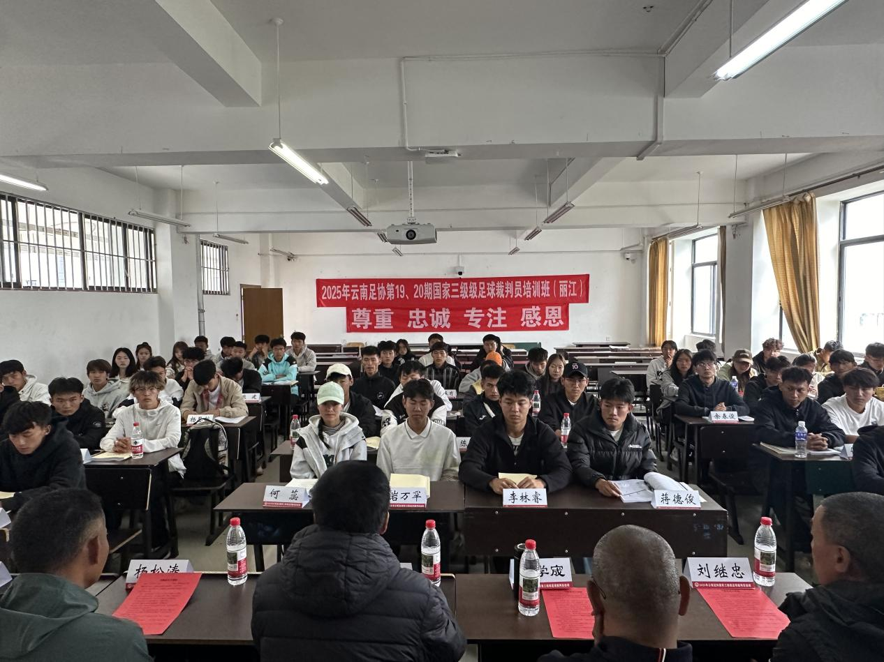 为深入贯彻落实习近平总书记关于发展好青少年足球的重要指示等有关精神,全面提高我校体育专业学生足球运动水平和执裁能力,进一步提升我校足球专业人才培养质量,经云南省足球协会批准同意,体育与健康学院与丽江市足球协会在2025年5月23日-25日共同成功举办2025年云南足协第19、20期国家三级足球裁判员培训班(丽江),并在丽江师范学院体育与健康学院举办了开班仪式。