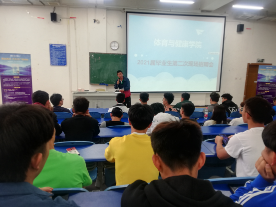 2021年5月19日13:00体育与健康学院在教学楼331阶梯教室召开了2021届毕业生第二次现场招聘会,体育学院党总支书记参加并主持了招聘会,参与本次招聘会的是体育学院2021届毕业生中的在校生和2022届非师范类专业毕业生,招聘的企业是北京神州汽车租赁有限公司丽江分公司。