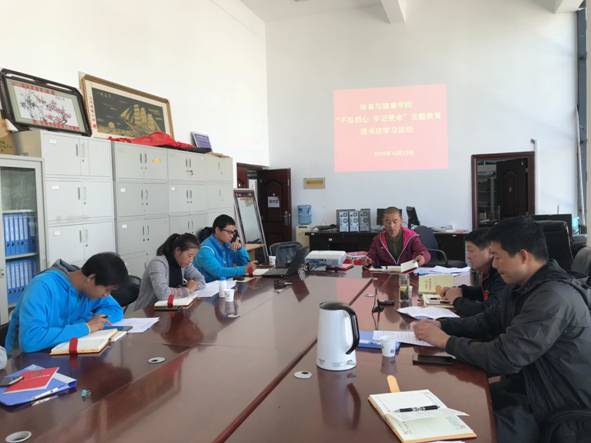 体育与健康学院党总支读书班于2019年10月12日13:30组织了“不忘初心 牢记使命”主题教育。就《中国共产党党内重要法规汇编》进行了部分内容重点学习和交流讨论。活动由刘继忠同志主持,王曙、和文华、王晗云、邢维新、和丽娟、卜令恩、高珍辉同志参加了学校活动。
