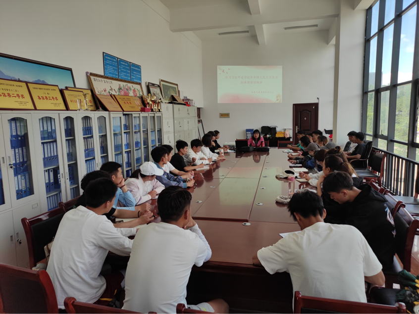在学习中,彭荣倩老师强调习近平总书记在中国人民大学考察调研时的重要讲话,希望广大青年用脚步丈量祖国大地,用眼睛发现中国精神,用耳朵倾听人民呼声,用内心感应时代脉搏,把对祖国血浓于水、与人民同呼吸共命运的情感贯穿学业全过程、融汇在事业追求中。作为学生学生干部应不断提高自身道德修养,努力提升言为士则、行为世范的行动自觉,用心感悟思想伟力,坚定理想信念,增强身心素质,提升知识素养。