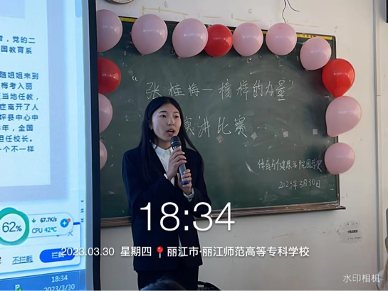 3月30日,体育与健康学院以“张桂梅---榜样的力量”为主题的大学生演讲比赛在丽江师范高等专科学校博学楼429举行。