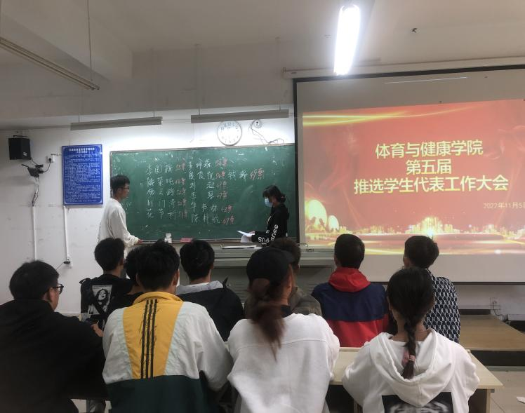 为贯彻落实党的二十大精神,配合好我校第五次学生代表大会的顺利召开。体育与健康学院团总支按照学校团委文件要求,经过下发相关通知、组织候选人提名、审核候选人资格等程序。于2022年11月5日召开推选大会,依据推选文件的相关要求进行推选。最后经过严格的投票环节后我院从提名的16名同学中推选出票数居前的12名同学作为代表,这12名同学将代表体育与健康学院参加本次学校的第五次学生代表大会。