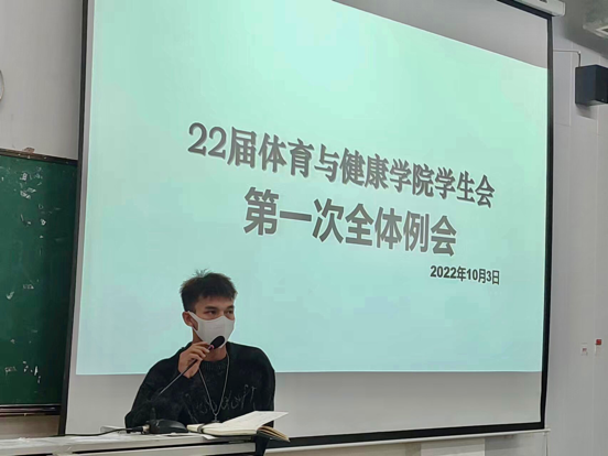 体育与健康学院学生会第一次全体例会于2022年10月3日晚8点在331教室举行,此次例会由学生会主席团成员和各部门部长及2022级新晋学生会成员共同参与。