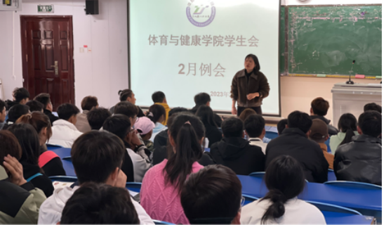 新学期,新征程。体育与健康学院学生会于2月27日在博学楼229教室召开了本学期第一次全体例会。