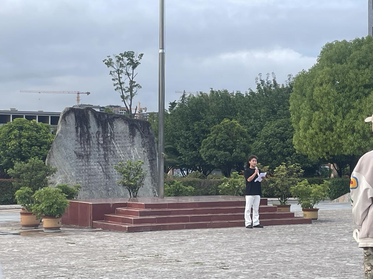 升旗仪式结束后,优秀学生代表谢维勇发表了讲话,他表示一代代中国人用“担当”书写着家国情怀。青春因奋斗而精彩,人生因担当而厚重。作为新时代的大学生我们要将个人理想与国家的前途命运紧密相连。把自己的职业规划、人生目标融入到实现中华民族伟大复兴的中国梦之中。