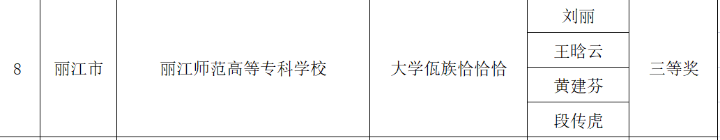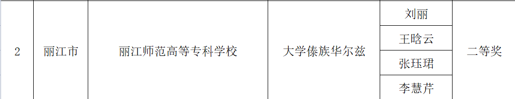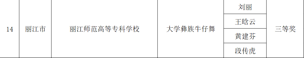在民族体育舞蹈线上教学成果竞赛活动中,刘丽等作品《大学傣族华尔兹》获二等奖,刘丽、王晗云、黄建芬、段传虎的作品《大学佤族恰恰恰》和《大学彝族牛仔舞》获三等奖。