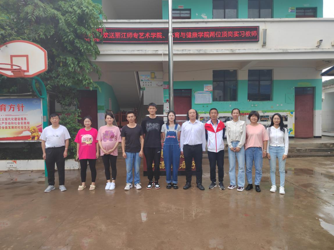 2023年7月4日,学校体育与健康学院和艺术学院党总支书记刘继忠、王飞到永胜县光华乡光明村光明小学迎接圆满完成顶岗实习任务的体育教育专业赵佳胜和音乐教育专业范雨婷两名同学。
