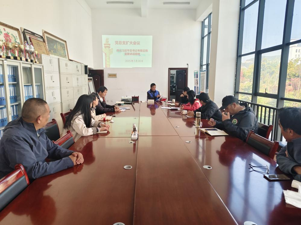 会议由党总支书记主持,传达学习了2025年3月21日人民网-人民日报发布的“习近平在云南考察时强调,解放思想、改革创新,奋发进取、真抓实干,在中国式现代化进程中开创云南发展新局面2025年3月21日云南网发布的“省委常委会召开扩大会议 认真传达学习习近平总书记考察云南重要讲话重要指示精神”“云南省领导干部会议认真传达学习习近平总书记考察云南重要讲话重要指示精神,坚定沿着习近平总书记指引的方向阔步前进;在中国式现代化进程中开创云南发展新局面”和“丽江市召开市委常委会扩大会议暨全市领导干部会议,传达学习习近平总书记考察云南重要讲话重要指示精神,部署全市学习宣传和贯彻落实工作”