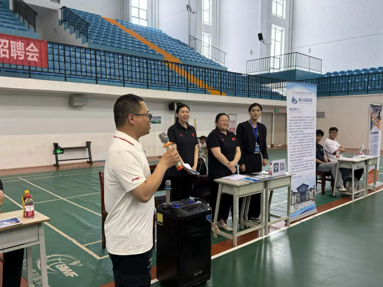 2024年6月13日下午14:30,体育与健康学院在体育馆举行了2025届毕业生招聘会,学院2025届毕业生积极到此了解各企业的招聘要求。此次招聘会吸引了众多知名企业参加,为毕业生提供了丰富多样的就业平台,搭建起了毕业生与企业之间沟通的桥梁。